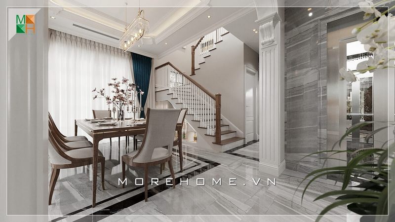 Bộ bàn ăn phòng ăn đương đại đẹp tại biệt thự phố Hà Tĩnh