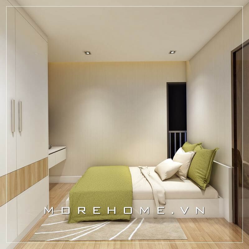 Giường ngủ 1 người được thiết kế theo phong cách hiện đại, gam màu trắng được gia chủ lựa chọn mang lại cảm giác rộng thoáng và tinh tế hơn cho không gian phòng ngủ