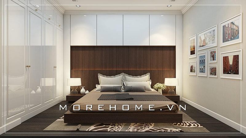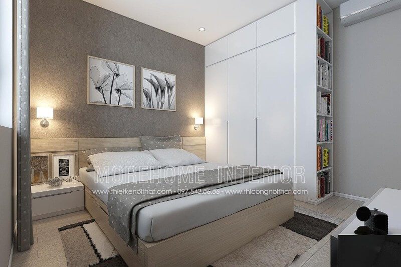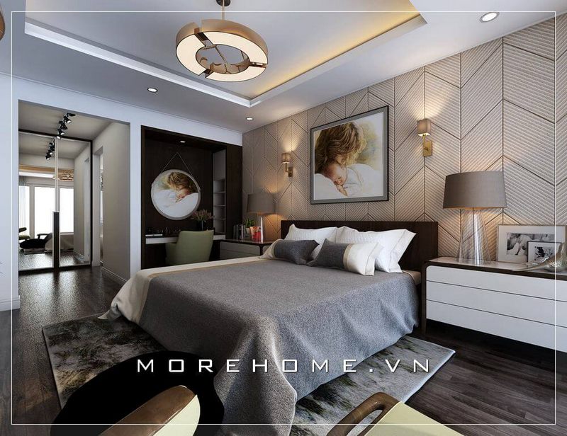 Mẫu giường ngủ hiện đại, tiện nghi, tạo nên điểm nhấn riêng về phong cách cho không gian nội thất phòng ngủ chung cư cao cấp tại Hà Nội
