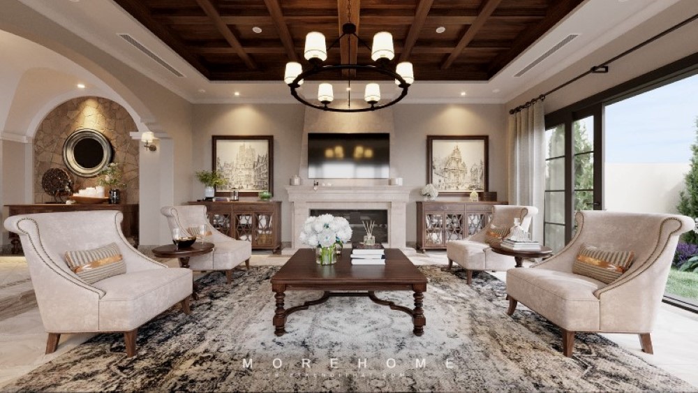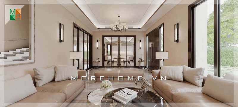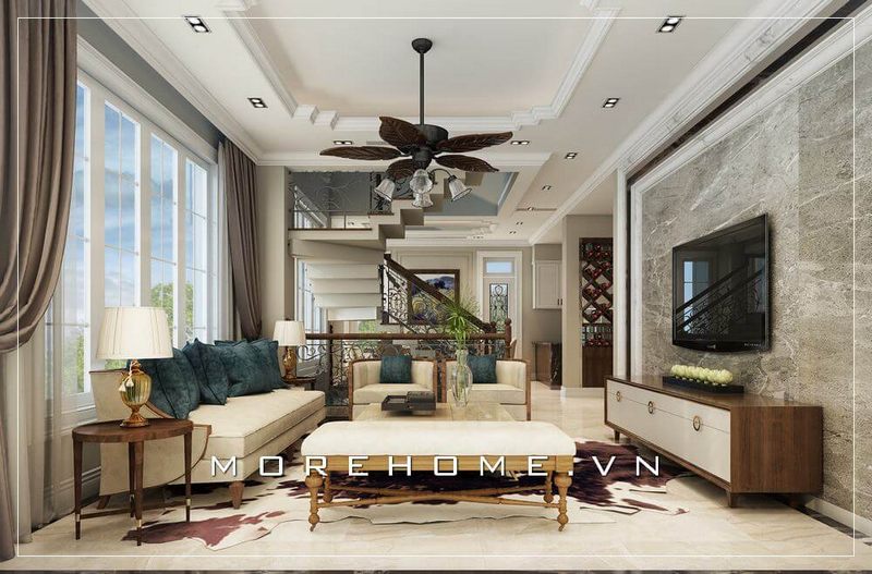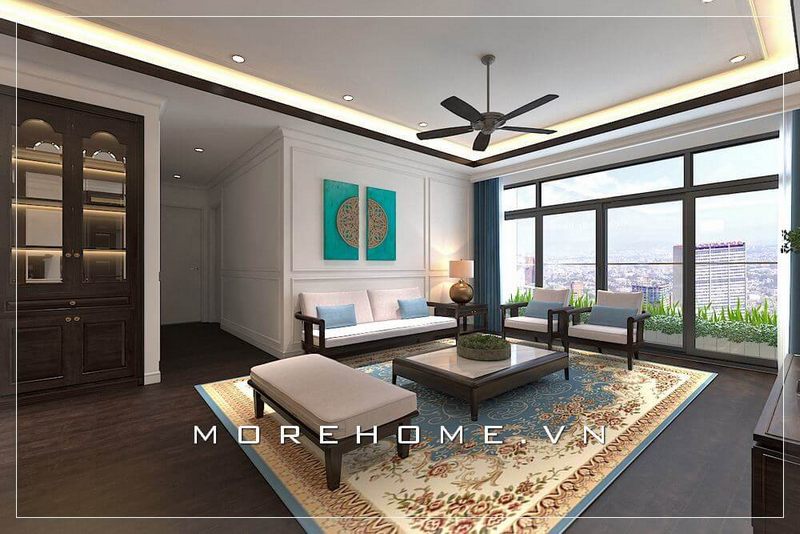 Ấn tượng với mẫu thiết kế phòng khách mang phong cách thiết kế Indochine của đội ngũ KTS của Morehome.