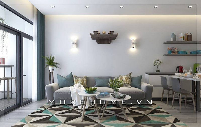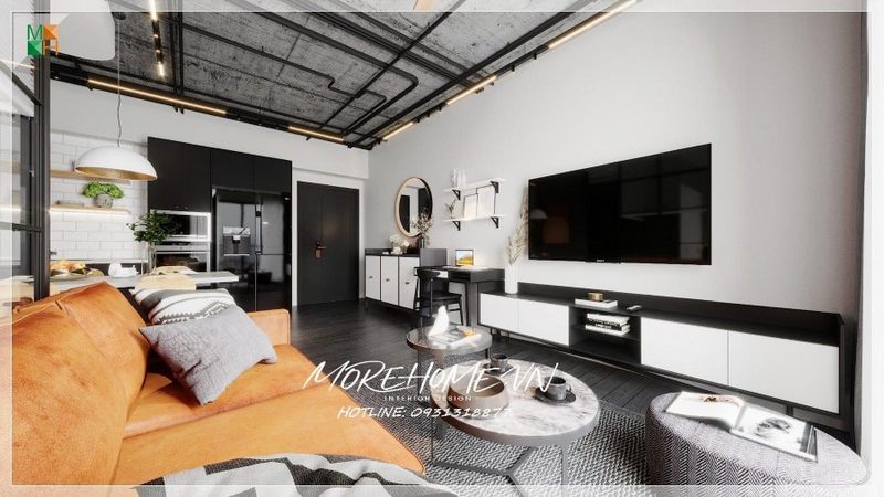 Quan sát gần hơn với phòng khách chung cư ta chú ý bởi thết kế mà các kiến trúc sư Morehome đặt nhiệt huyết vào tác phẩm của họ.
