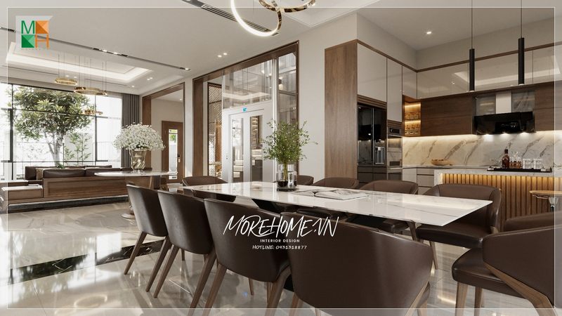 Phòng bếp được trang trí đẹp mắt, sang trọng và tiện nghi.
